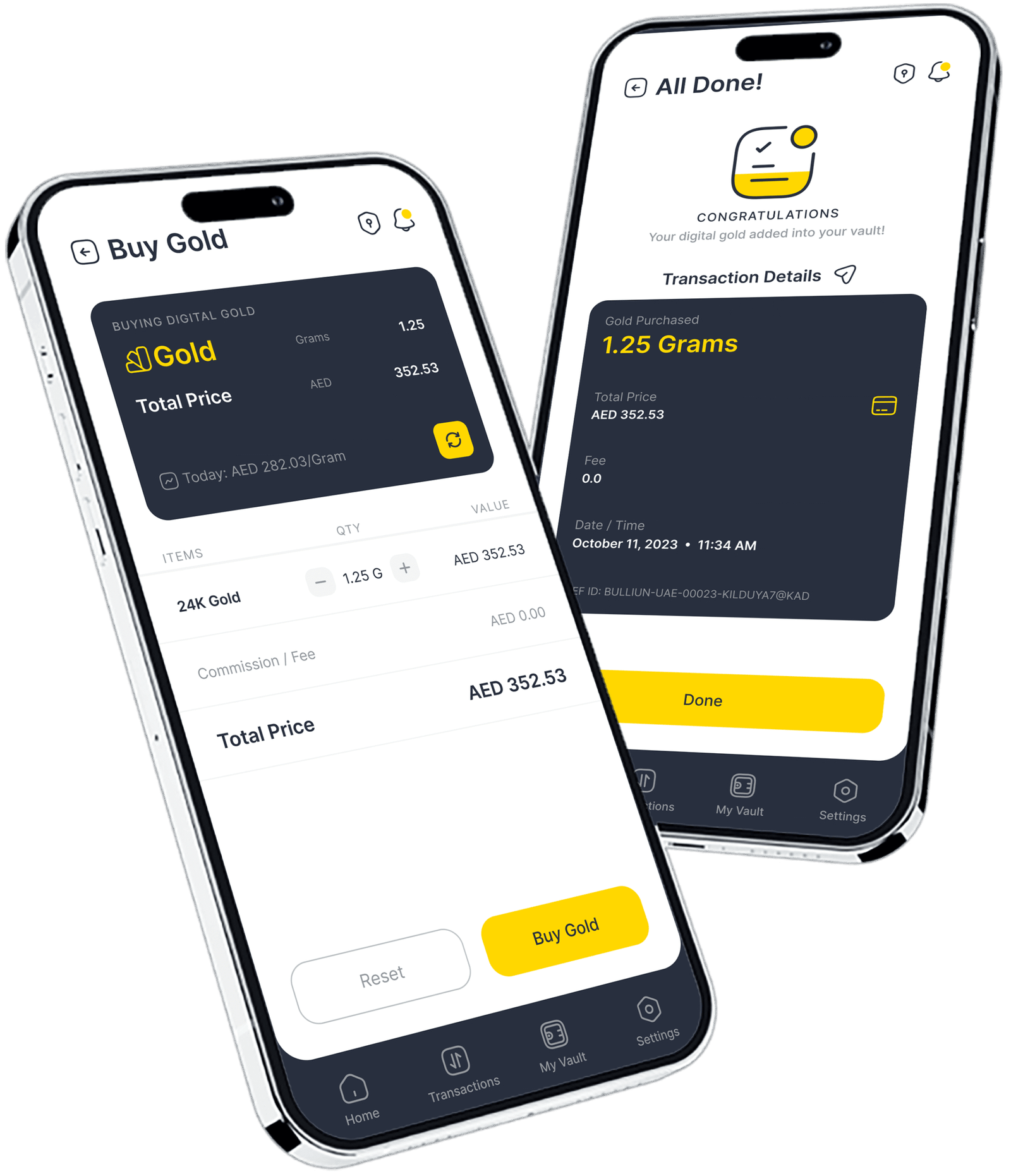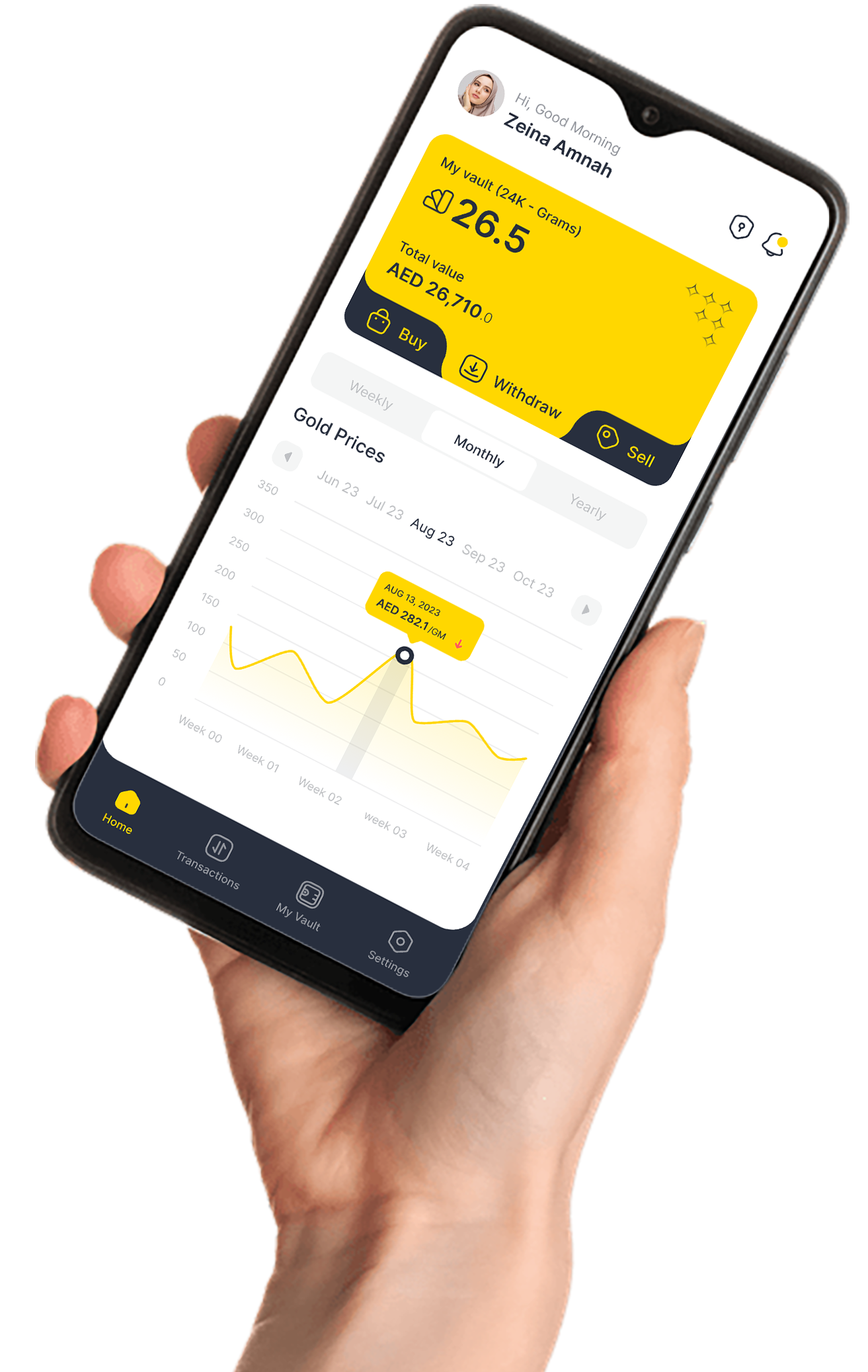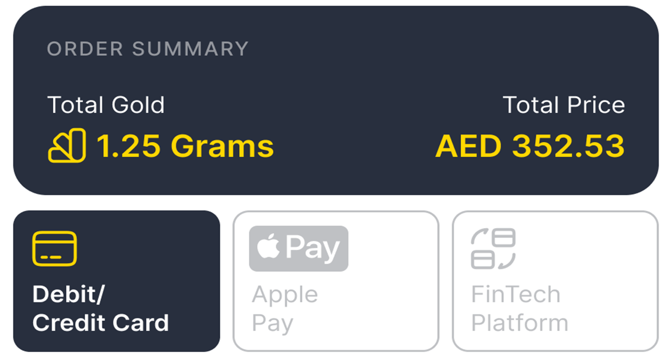 Our app makes it simple and secure to own gold, starting with just 40 AED. You can grow your wealth step by step with fractional gold ownership — because we believe that building a solid financial future with precious metals should be accessible to everyone.
