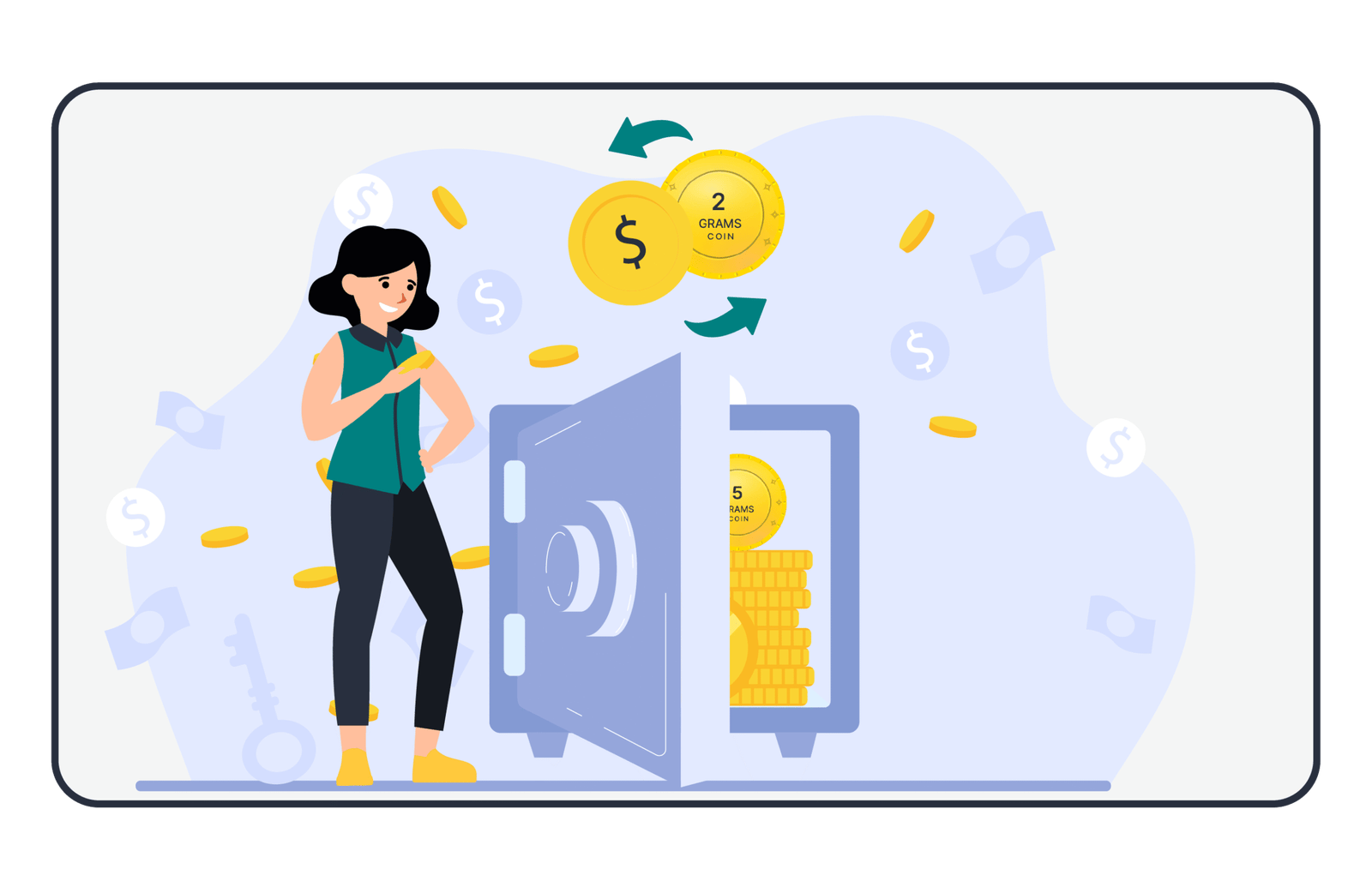 Prefer the weight of gold in your palm? Easily convert your savings into physical coins. Choose from 1g, 5g, or 10g denominations and take possession of your precious metal.