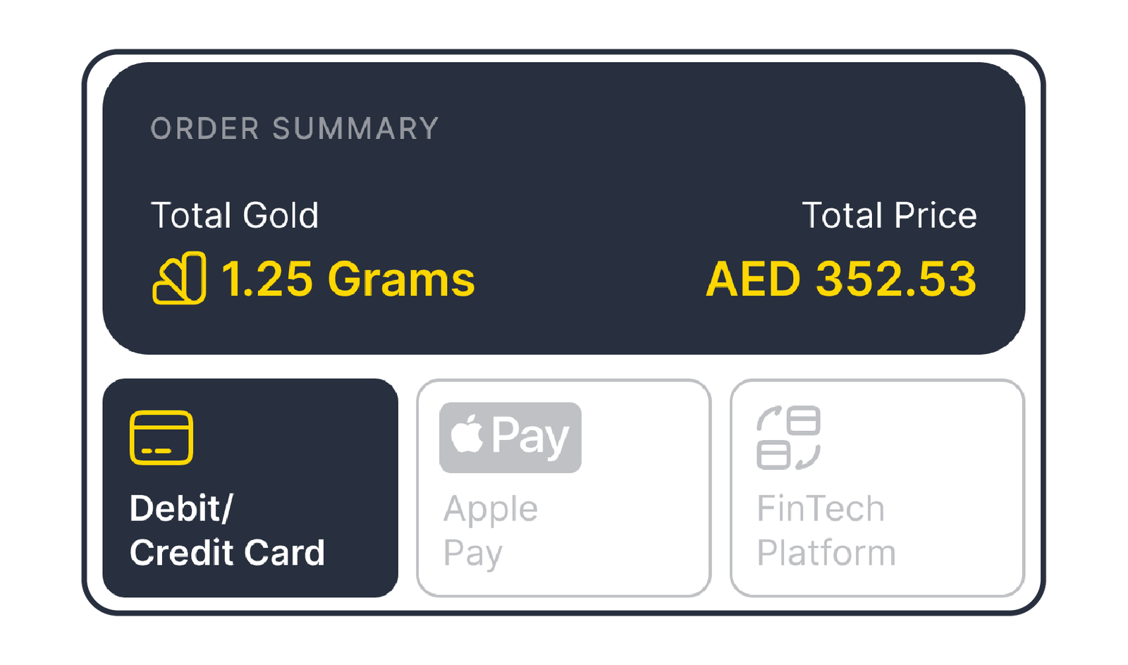 Decide how much gold you want to add to your savings today. Simply select an amount that aligns with your available funds and tap to proceed. It’s your journey, your pace.